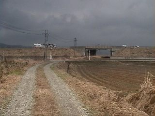 高速道路下の通路の幅が、現在では細い農道しか通らないわりには広い。
