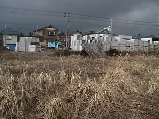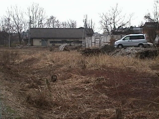 越後関原駅跡、奥の建物が隣接する農協倉庫。