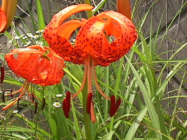 本来は山間部の花なのですが、空地などでよく見かけます。茎が黒くないのがオニユリとの違いです。